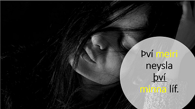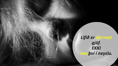 Fyrir verkefnið erum við að safna fyrirbyggjandi, uppbyggjandi, hnitmiðuðum setningum/frösum til að auglýsa á Íslandi á öllum miðlum til að leggja áherslu á skaðsemi vímuefna (áfengi er líka vímuefni)